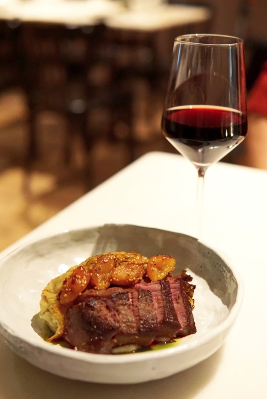 Het meest indrukwekkende gerecht van de avond was het hert met spitskool. Ze serveerden het met een kruidenmix van ras el hanout en een zoete touch van abrikoos. Ze bakten het hertenvlees perfect rosé, wat het heerlijk maakte. Wat een prachtig gerecht!