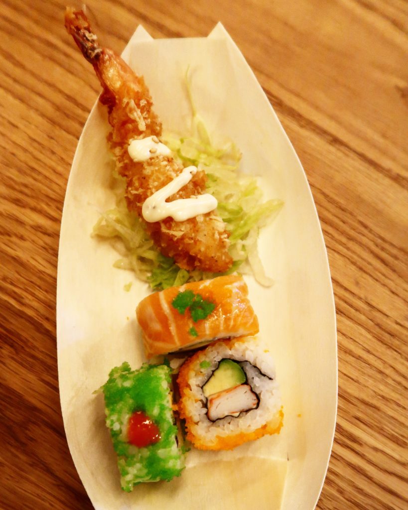 Liever Japans? Bij Samurice vind je verse sushi, sashimi, gyoza’s en pokebowls. Deze stand, onderdeel van restaurant Karaku, fileert dagelijks verse vis. Wij zagen hier hoe zij verse zalm fileren, waarna we de sashimi proefde. Boterzacht en erg lekker.