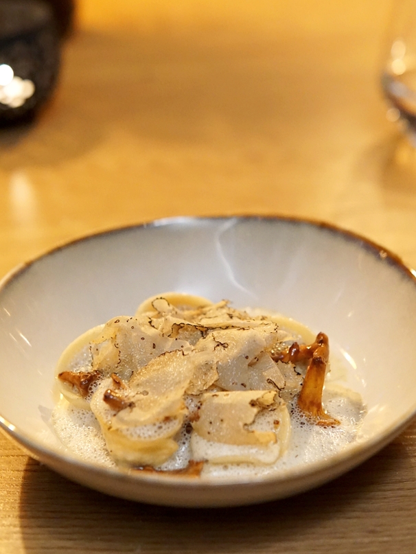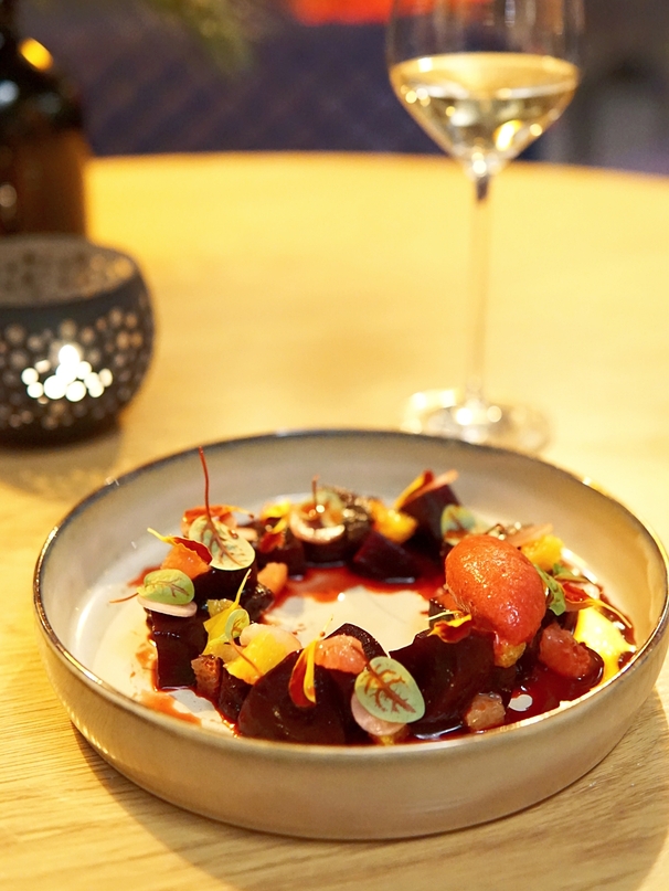 Daarna volgden nog meer smaakvolle gerechten. De rode biet met citrus en sorbet en de kabeljauw met savooiekool en bimi in een romige saus waren verfijnd en perfect in balans. Maar mijn absolute favorieten waren de tortelloni met paddenstoelen en verse zwarte truffel, en de langoustine met fregola en pompoen. Wat een pure smaken en schitterende combinaties! De kaart biedt nog veel meer lekkers, maar dat bewaren we graag voor een volgende keer.
