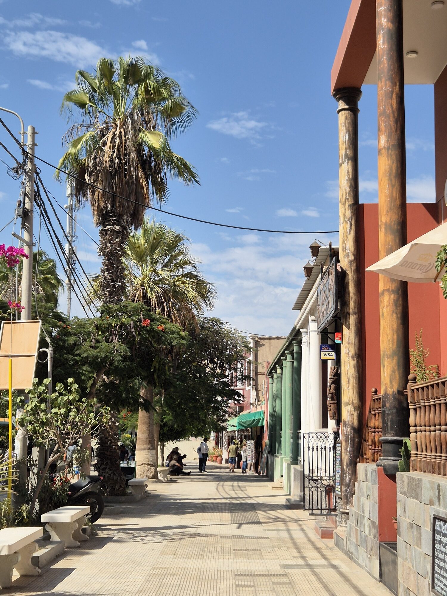 Nazca is een stad waar veel toeristen een tussenstop maken om de Nazcalijnen te bezoeken. Deze stad, midden in de Peruaanse woestijn, is vooral bekend om de Nazcalijnen. Dit zijn reusachtige tekeningen in het zand die alleen vanuit de lucht zichtbaar zijn. Maar de stad zelf heeft ook een warme, levendige charme die meteen opvalt. Het is hier vaak rond de 25 graden, en de Zuid-Amerikaanse sfeer voel je overal. Overal klonk vrolijke Latin muziek uit kleine winkeltjes en de stad ademt een ontspannen en gezellige sfeer.