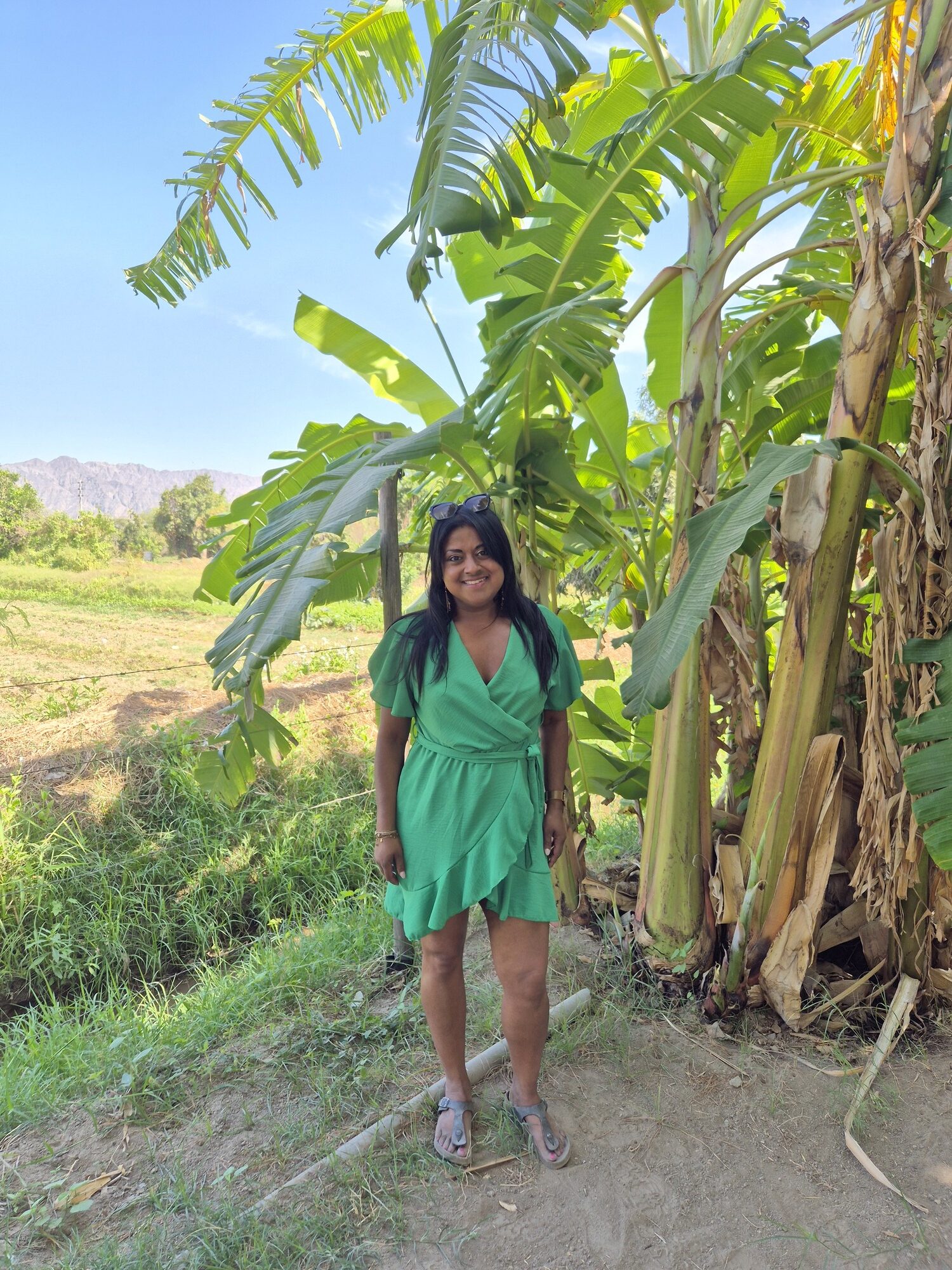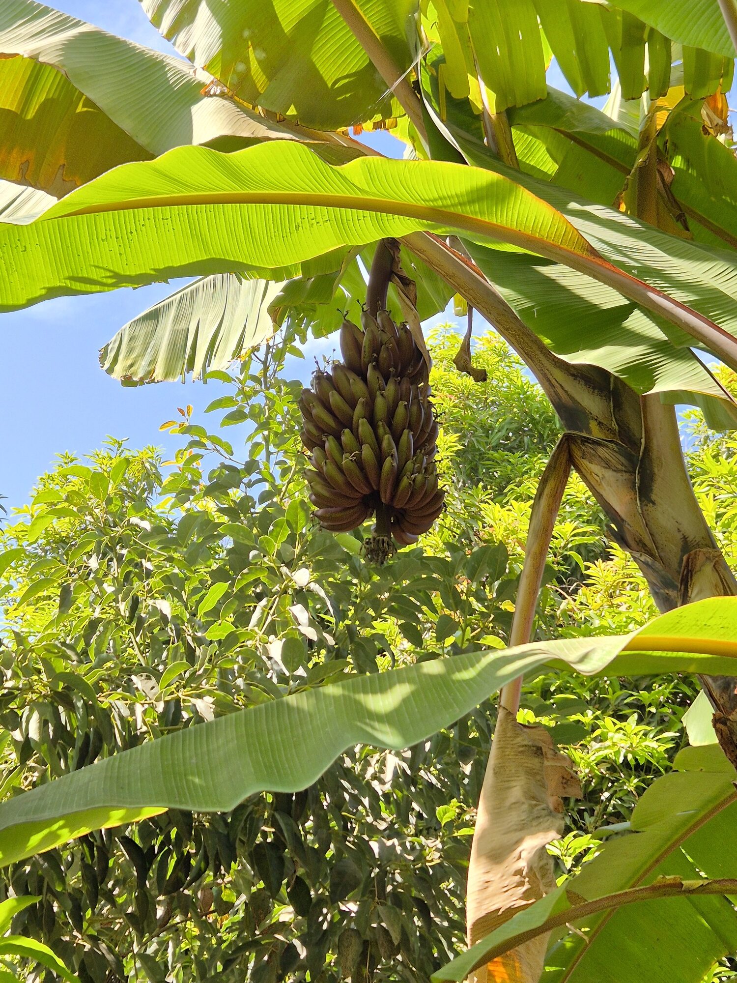 Daarna bezochten we een restaurant met een groene, vruchtbare tuin met enorme bananenbomen. Dit is wat je veel langs de wegen ziet. Zo mooi en puur!