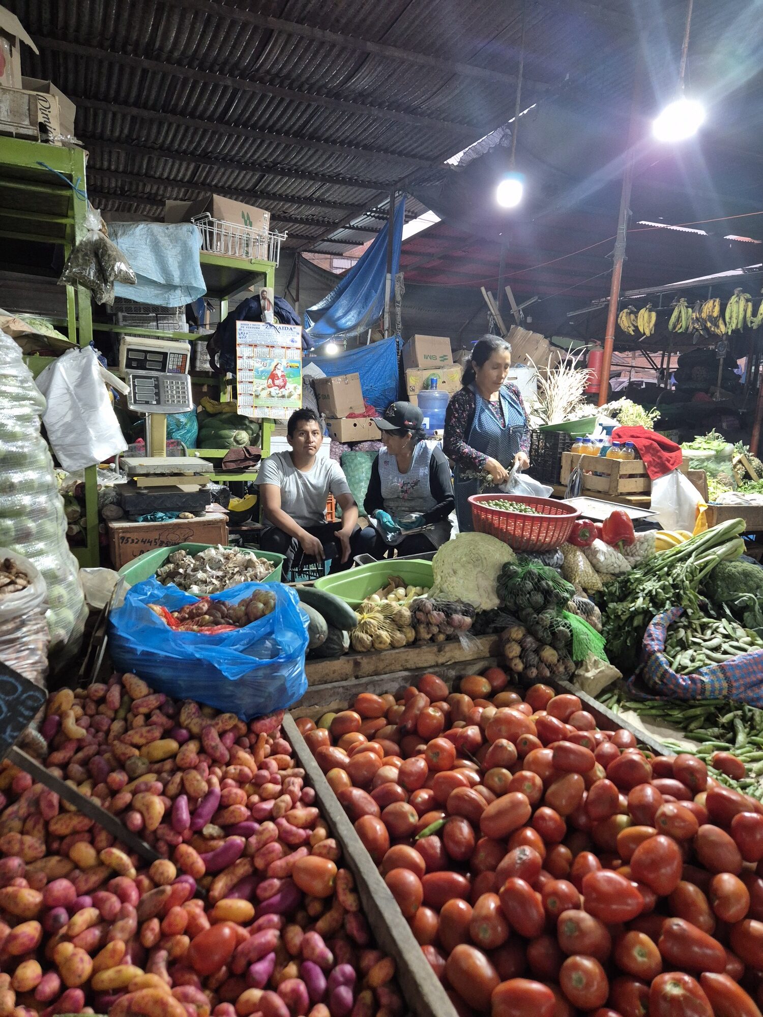 Overdag is er een grote lokale markt, waar ik mijn ogen uitkeek over de overvloed aan producten. Tientallen soorten aardappels, zwarte maïs, bananenchips, cassavechips en fruit in alle kleuren en geuren.