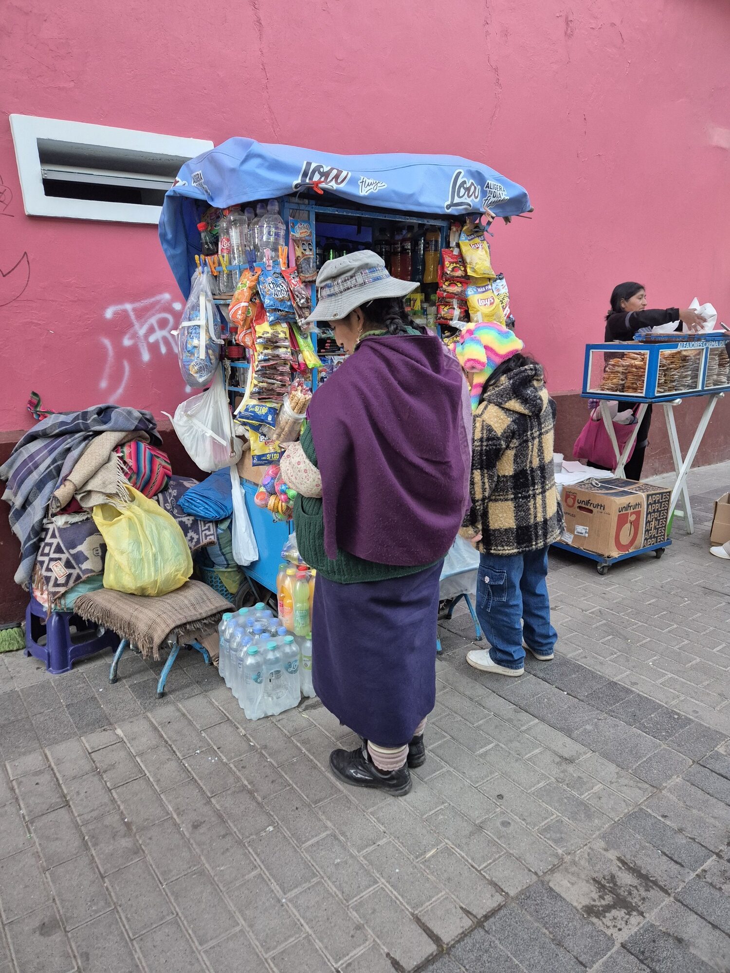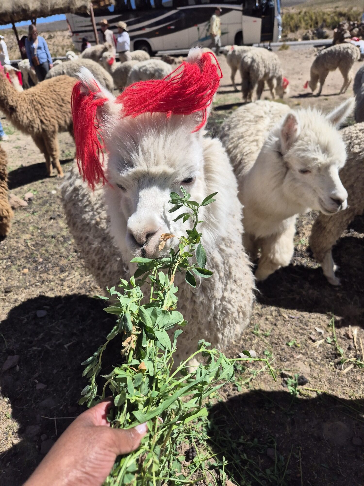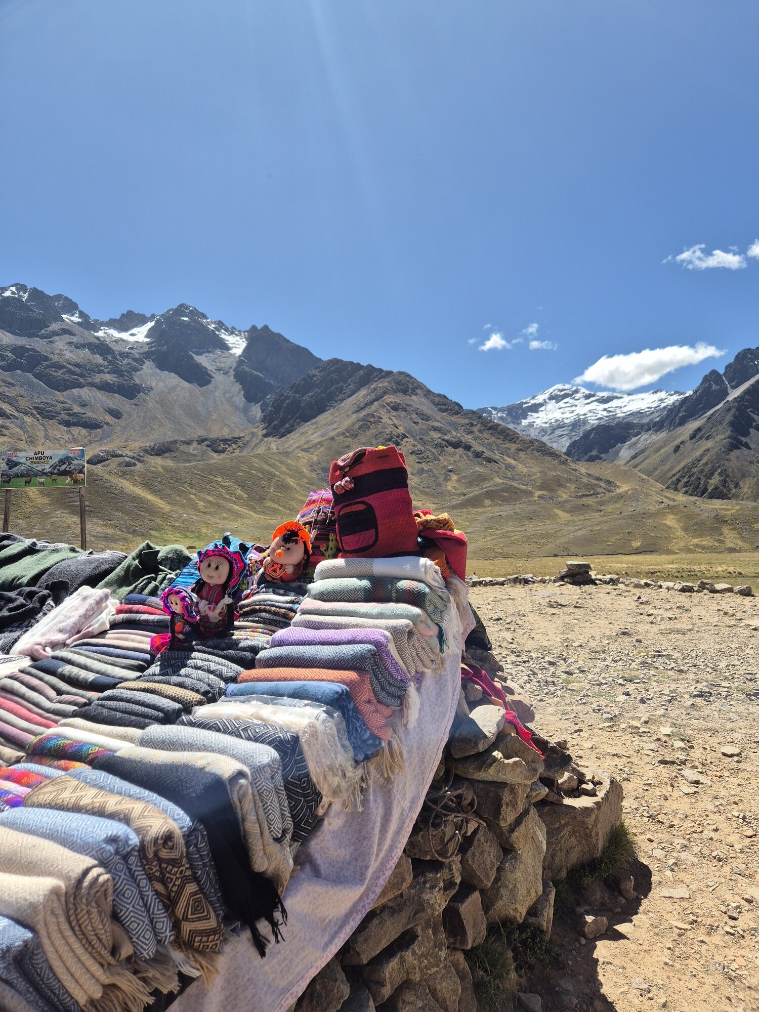 Ik genoot van het uitzicht onderweg, honderden alpaca’s die je door de dorpsweggetjes ziet, we konden ze zelfs voeren! Daarnaast vind je ook veel kleurrijke marktkraampjes langs de weg.