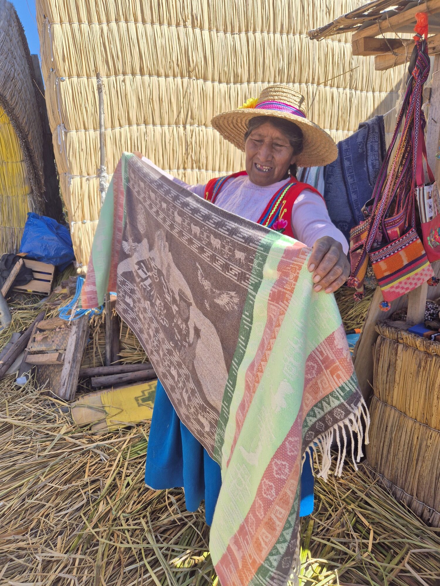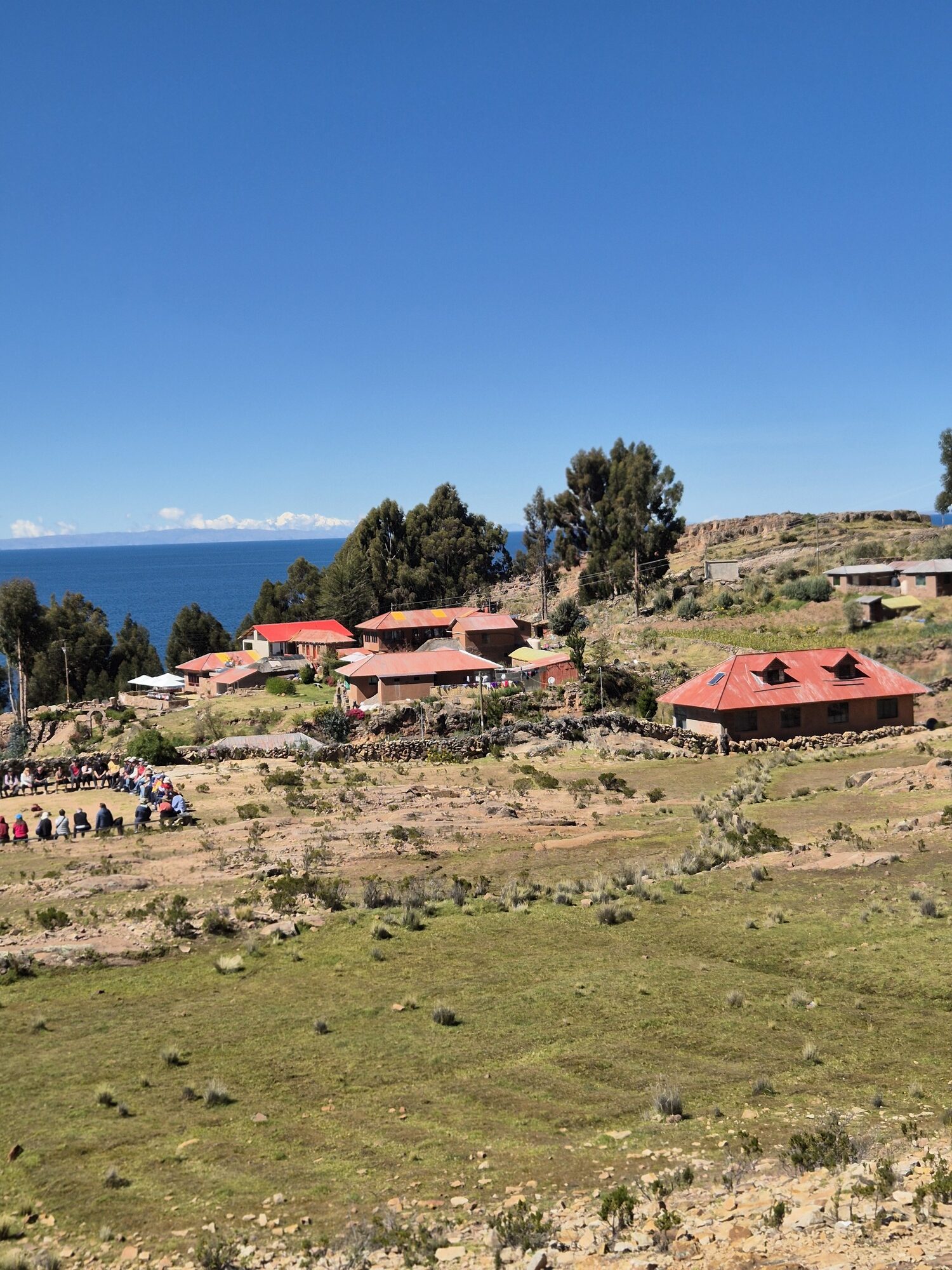 Daarna voeren we verder naar Taquile Island. Het uitzicht over het felblauwe water met uitzicht op Boliviais prachtig. Op het eiland leven de bewoners nog volgens eeuwenoude tradities. Taquile staat bekend om zijn textiel: mannen breien hier (!) en hun vakmanschap is zelfs erkend door UNESCO. Hier genoten we van een eenvoudige maar heerlijke lunch: versgevangen trucha (lokale forel) en een warme kom quinoasoep. Verser dan dit wordt het niet! Genieten met uitzicht op het Titicacameer.