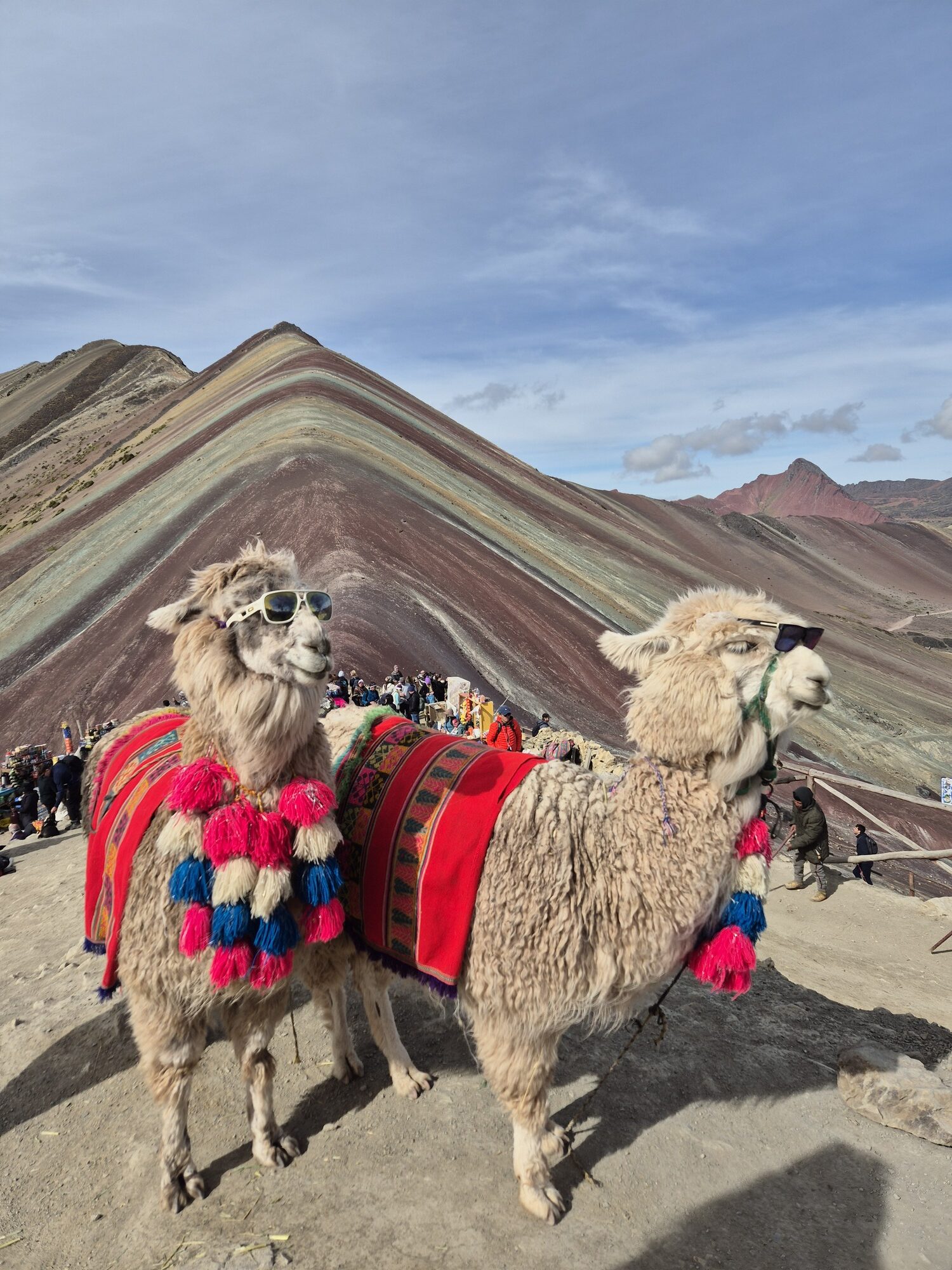 De Vinicunca, beter bekend als Rainbow Mountain, ligt diep in de Peruaanse Andes, in de regio Cuzco. Deze bijzondere berg heeft zijn bijnaam te danken aan de zeven gekleurde strepen die over het landschap lopen. Die kleuren zijn ontstaan door mineralen als ijzer, koper en malachiet. De hike naar Rainbow Mountain duurt ongeveer 1,5 uur. Je kunt ook (een groot deel van) de route te paard afleggen – dat kost zo’n 80 soles, zo’n € 20,-. Terwijl we langzaam omhoog klommen, zagen we besneeuwde bergtoppen links van ons . Het was koud, maar het uitzicht maakte alles goed. Het laatste stuk is het meest steil en moet je zelf lopen. Neem je tijd en rust tussendoor goed uit, op deze hoogte merk je echt dat je ademhaling en conditie anders zijn.