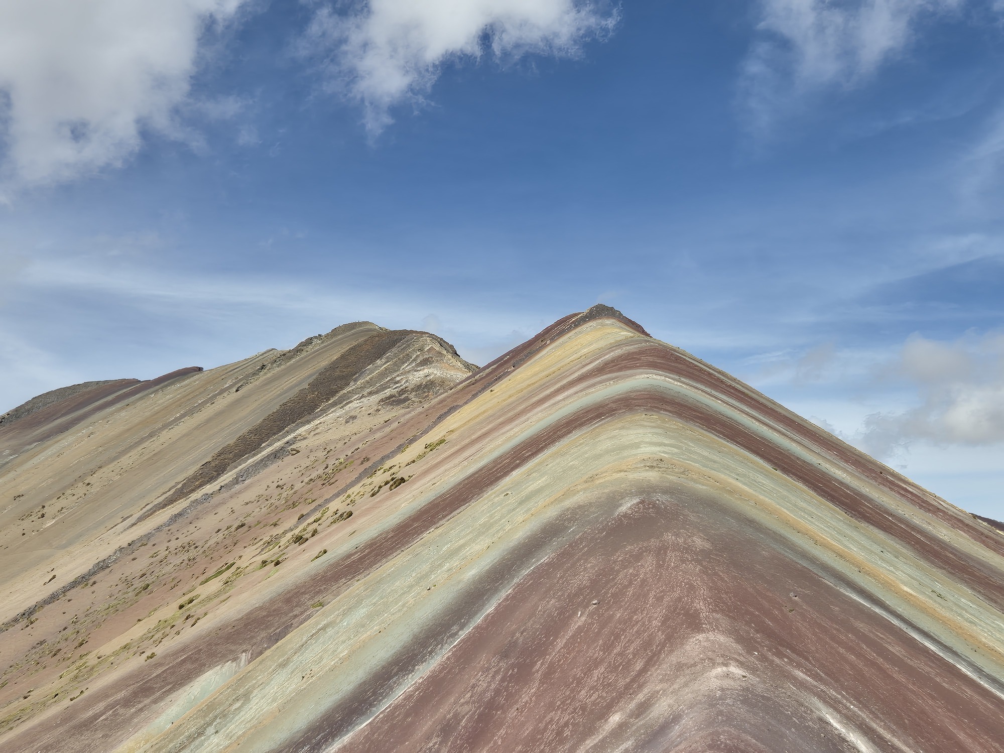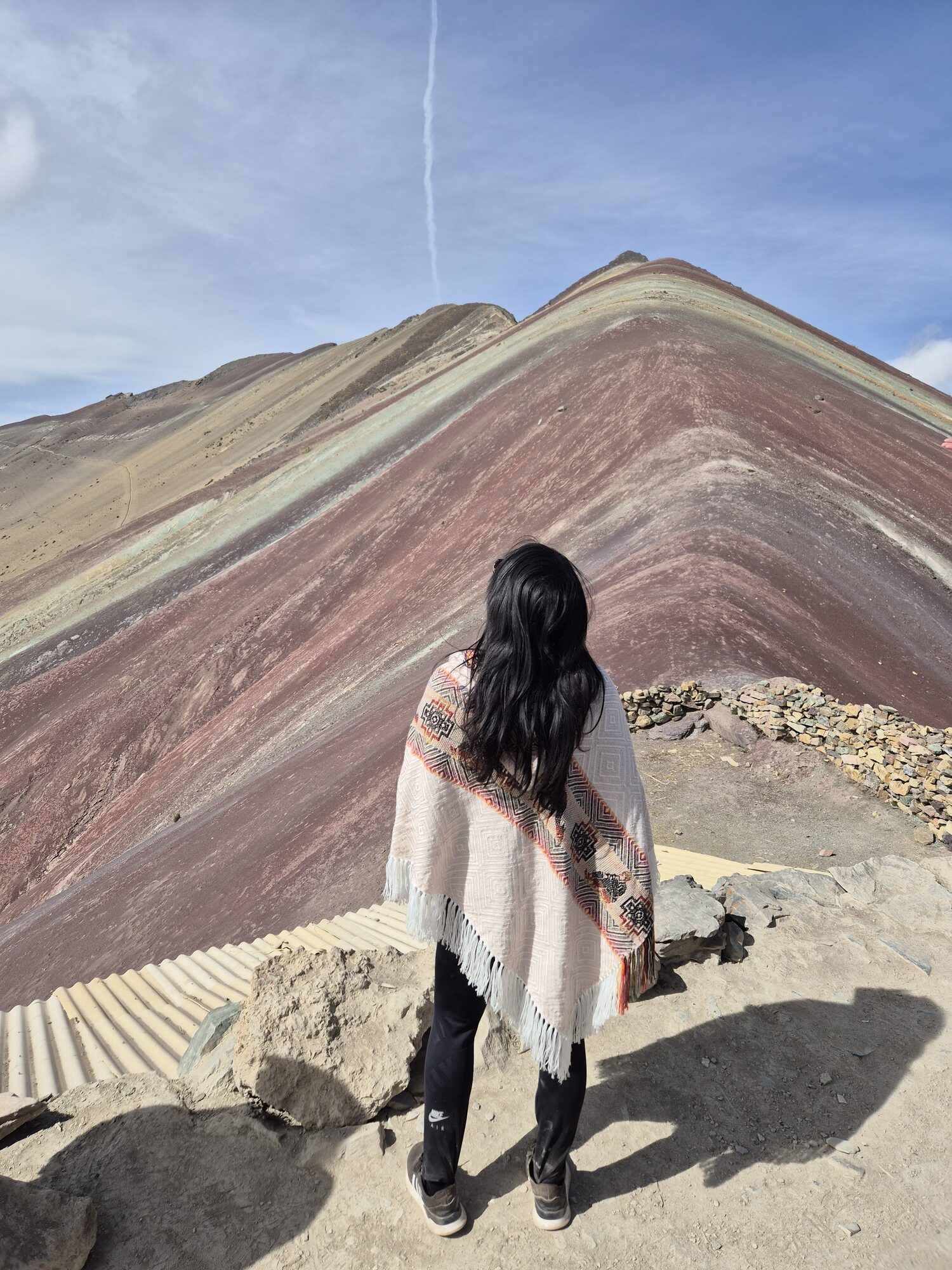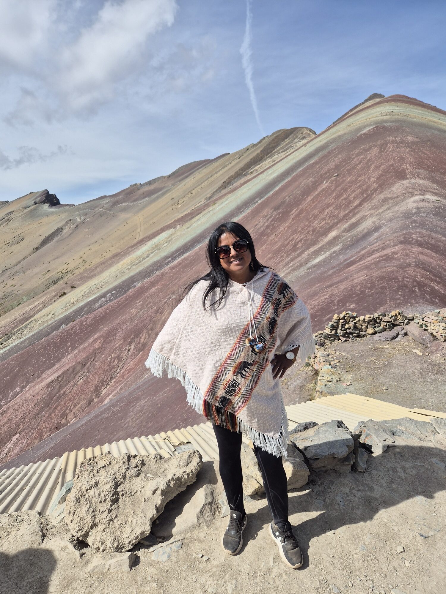 Eenmaal boven, tegenover de Rainbow Mountain, wacht het uitzicht. Zo bijzonder om hier te staan en dit met eigen ogen te zien. Het voelt bijna onwerkelijk om op 5.036 meter hoogte oog in oog te staan met zo’n kleurrijk natuurwonder. Wauw… wat een indrukwekkende plek! Een ervaring die ik niet snel vergeet. Ik vond dit één van de mooiste plekken van mijn reis.