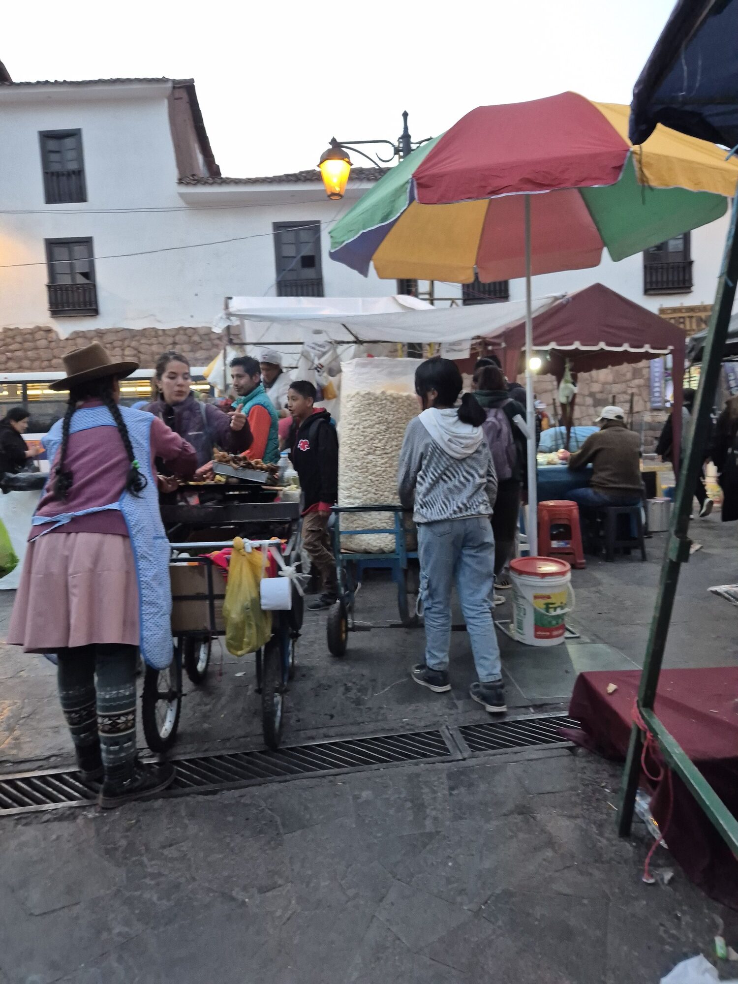 Het Plaza de Armas is het middelpunt van Cusco, een levendig plein vol kerken, winkels en terrassen waar je heerlijk kunt neerploffen en mensen kunt kijken. Je vindt hier indrukwekkende kathedralen, toeristische winkels en volop restaurants. Maar loop een zijstraatje in en je staat ineens tussen de kleurrijke kraampjes van een lokale markt . Souvenirs, handgemaakte spullen, shawls van alpacawol. Zin in een massage? Voor omgerekend zo’n €5 krijg je al een fijne massage van een half uur .
