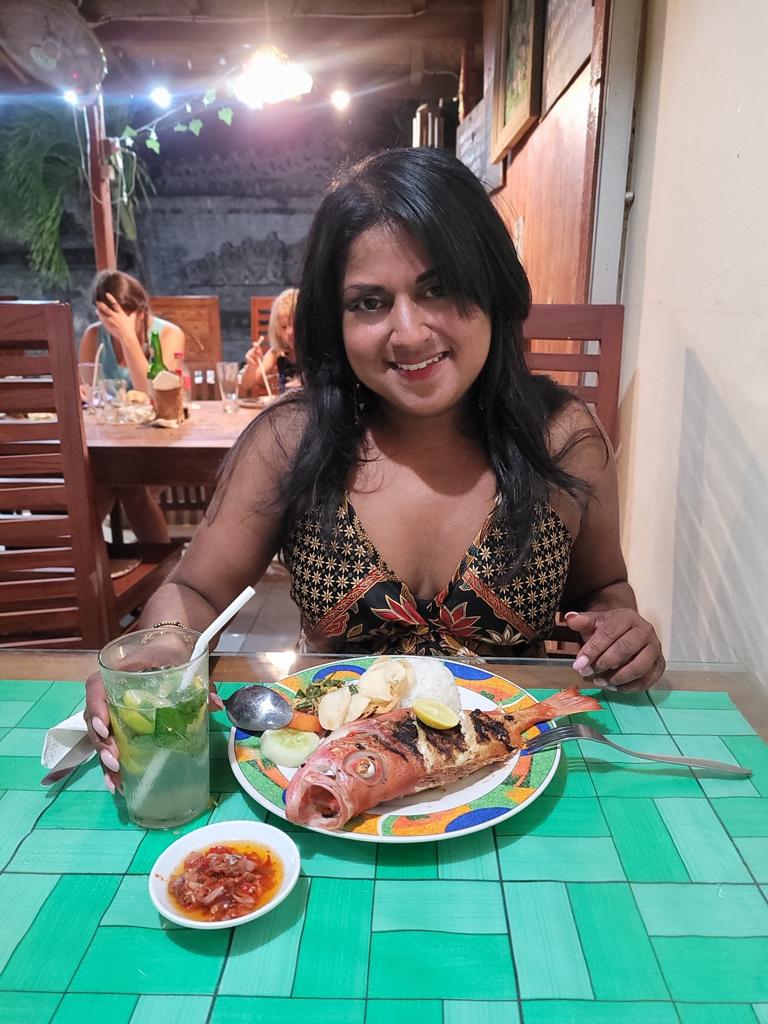 We sloten onze reis af in Jimbaran, een vissersdorp vlak bij de luchthaven en op 30 minuten van Seminyak. Deze plek, bekend om zijn prachtige zonsondergangen en verse zeevruchten, is overdag rustig met weinig toeristen. Op de vismarkt aan het strand kun je verse vis kopen en laten grillen bij een nabijgelegen restaurant.
