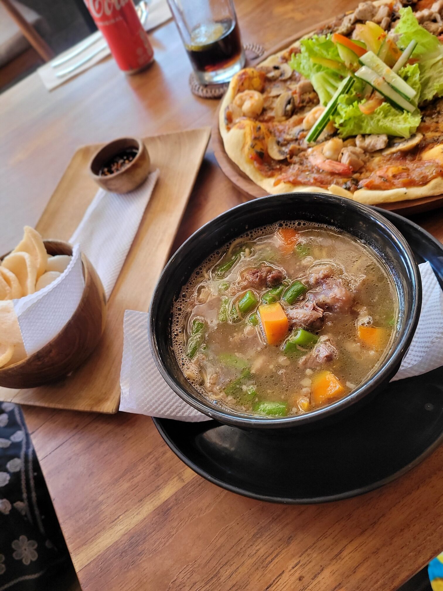 Gunung Batur is een actieve vulkaan in het noorden van Bali. Het heeft een indrukwekkend uitzicht en is een populaire bestemming voor avonturiers en natuurliefhebbers. Een bijzondere ervaring is eten met uitzicht op deze enorme vulkaan bij Gran Puncak Sari. Ik genoot van een heerlijk Balinees buffet, met panoramisch uitzicht op de vulkaan en het omliggende Batur-meer.