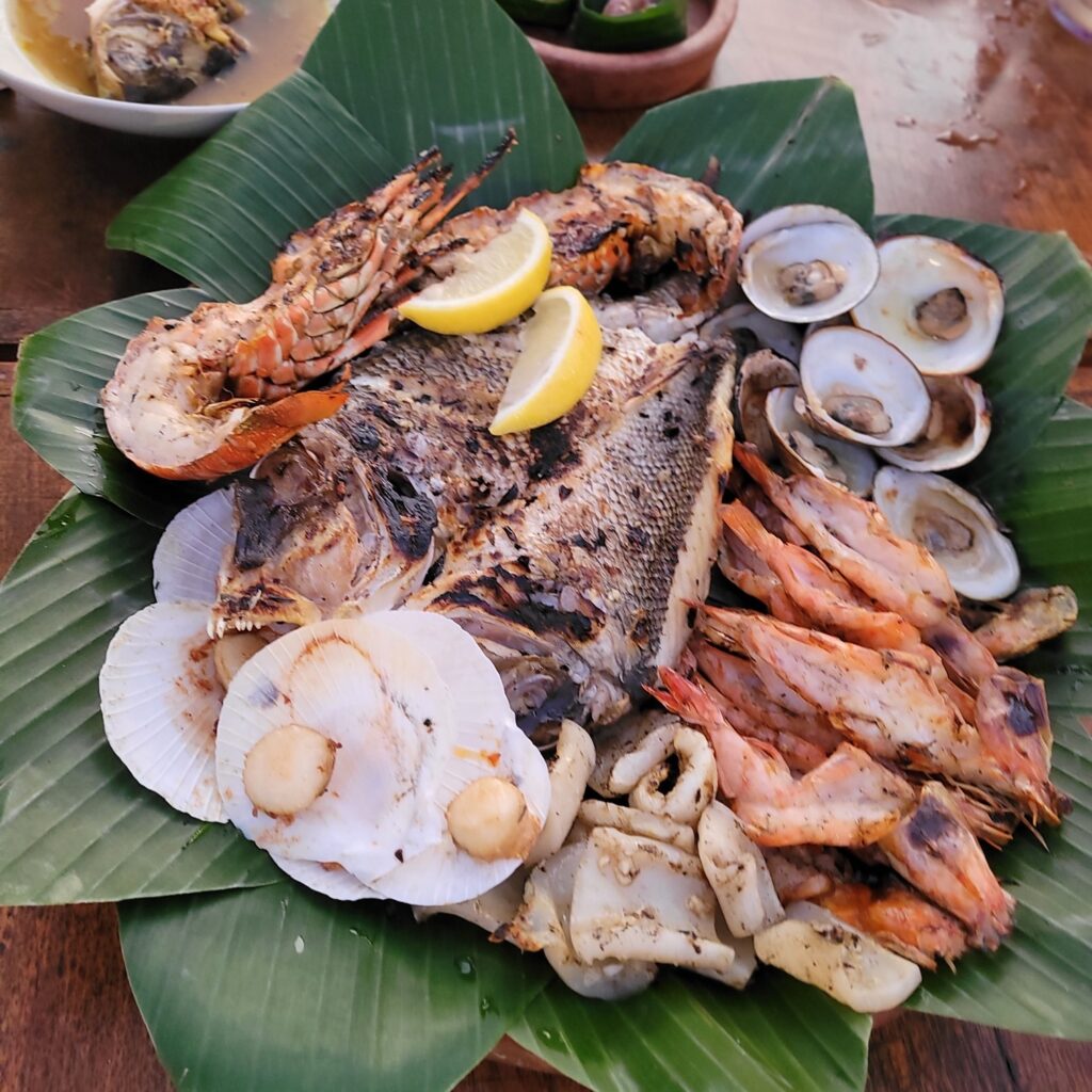 ’s Avonds bruist Jimbaran met toeristen die aan het strand genieten van gegrilde vis en schaaldieren. Wij bestelden een plateau vol vis, mosselen en inktvis, met heerlijke bijgerechten. Het eten, de sfeer en de zonsondergang maakten dit tot een van mijn reisfavorieten!
