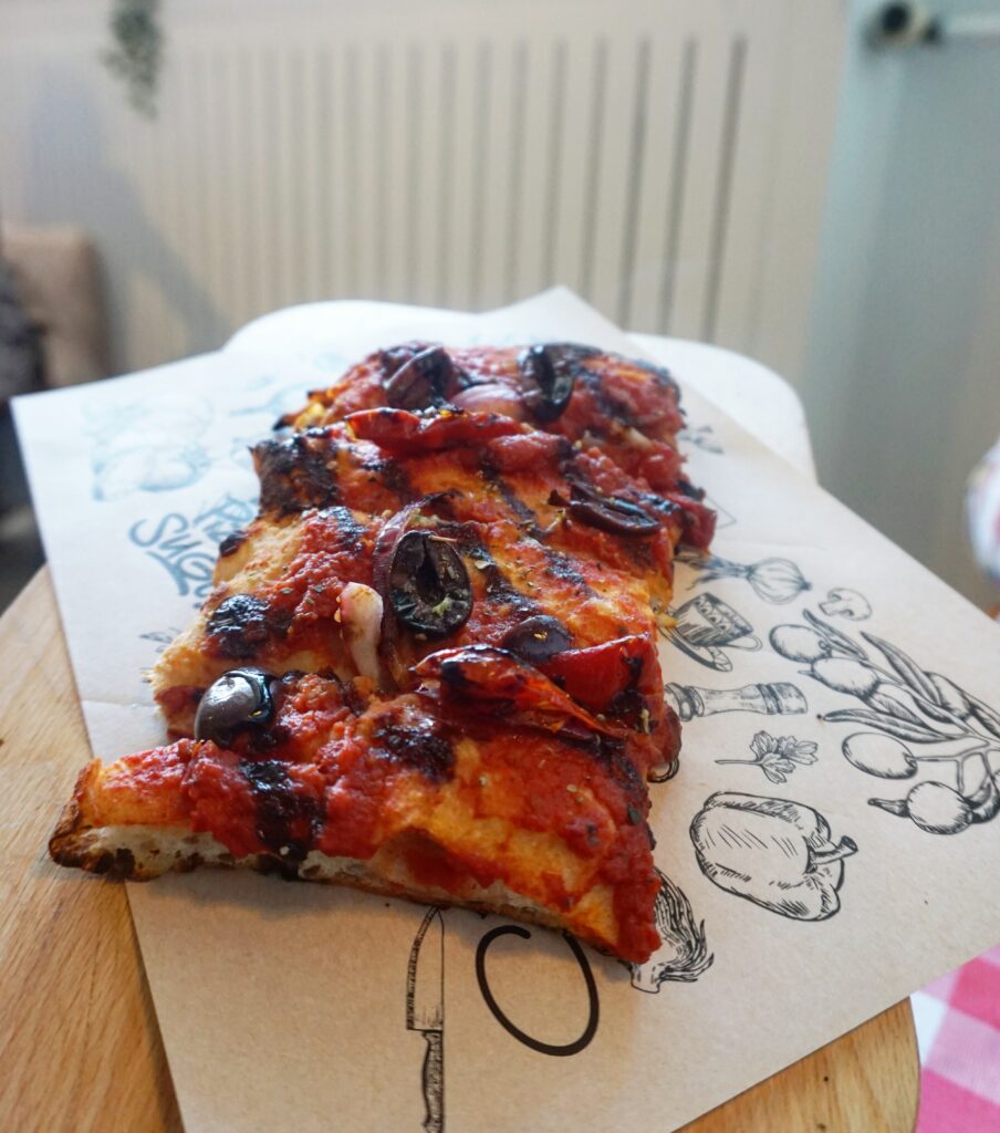Sugo is een pizzaketen met als concept het Italiaanse Pizza al Taglio. Toen ik een aantal jaar geleden in Rome mijn vakantie vierde, was ik al verliefd op dit concept. Op elke hoek van de straat kom je wel een vierkant pizzastuk kopen en zelfs nog veel vegan varianten. In Italië bestonden vegan pizza’s al, dus een heerlijk stuk met courgette en/ of tomatensaus zonder kaas nam ik stiekem zelfs vaak als ontbijt. SUGO heeft momenteel 16 restaurants in Nederland, waaronder 2 in Rotterdam. Bij SUGO is het een feest op je pizza te sharen, je krijg dan een plank met allemaal verschillende stukken pizza. De stukken zijn wat kleiner, waardoor je er makkelijk 2 of 3 op kan. Geen keuzestress hier ;). Liever een pastagerecht of starten met antipasti, ook dit staat hier op de kaart.