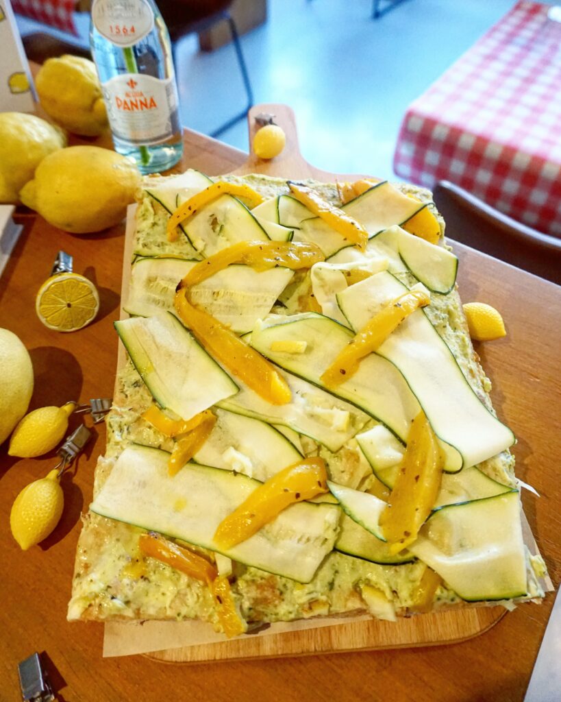 The Lemon Kitchen Special Pizza is een pizza met dezelfde luchtige en krokante bodem, maar dan met een topping van mascarpone, groene pesto, gegrilde paprika, courgette, burrata, salie, citroen en citroen zest. Deze zomerse pizza is naast rijkelijk gevuld, ook nog eens heel kleurrijk. En er zit ook nog eens veel groente op. Ik kon het zelf helaas niet eten, maar hoorde dat het een ontzettend lekkere pizza is. Een mooie combinatie van hartig, fris en romig tegelijk. Wat een topper van The Lemon Kitchen.