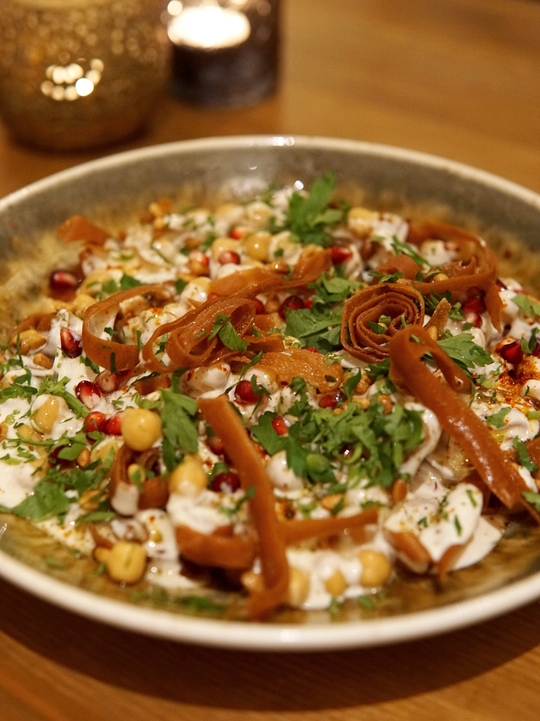 Een andere topper was de Fattet Hummus. Dit gerecht bestaat uit laagjes krokant brood, gekookte kikkererwten, romige tahinisaus, geroosterde pijnboompitten en granaatappelpitjes. De balans tussen zoet, hartig en knapperig maakte deze maaltijd af.