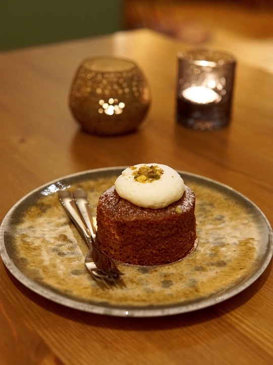 Houd je van zoet? Dan zijn Midden-Oosterse desserts zeker de moeite waard om te proberen! Denk aan Arabische baklava, rijkelijk gevuld met noten, of heerlijke dadels gevuld met noten. Daarnaast hebben ze nog taartjes van de dag, zoals carrotcake, een bolgebakje van pure chocolade met framboos en een vegan vanille-mango-passievrucht taartje. De carrot cake werd door mijn tafelgenoot met veel enthousiasme goedgekeurd!